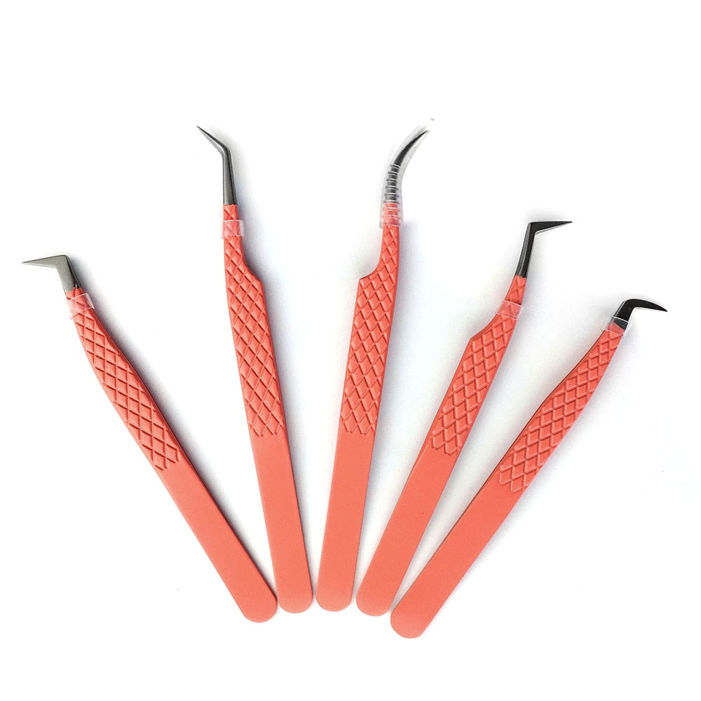 Conjunto de Pinças Profissionais para Extensão de Cílios em Aço Inoxidável